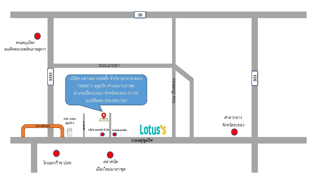 | HEADQUARTERS MAHANAKORN TRADING CO.,LTE 301 Rama 3 Rd., Bangklo, Bangkholeam, Bangkok 10120 Thailand BRANCH MAHANAKORN TRADING CO.,LTD 188/87 Sukhumvit Rd., Maptaphut, Muang, Rayong 21150 Thailand |